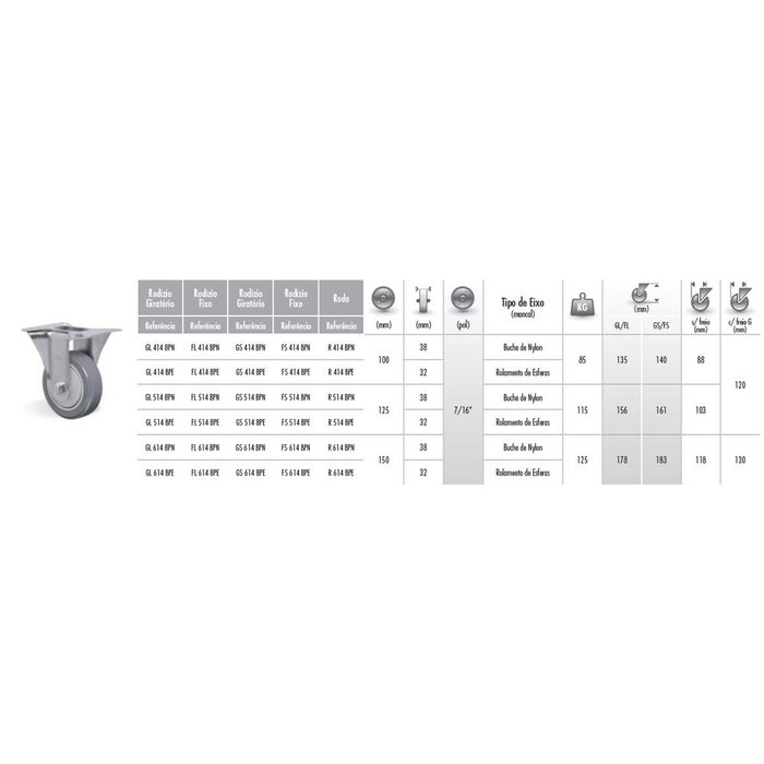 Rodizio Fixo Placa 414 Cinza Bpn Schioppa