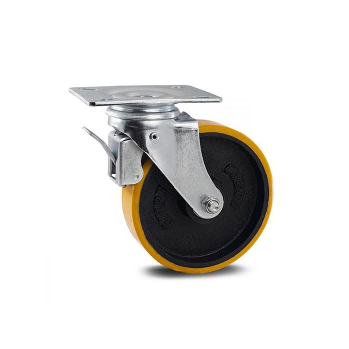 Rodizio Giratório 5'' com Placa e Freio Pu Capacidade até 300kg Linha Reforçada - Colson