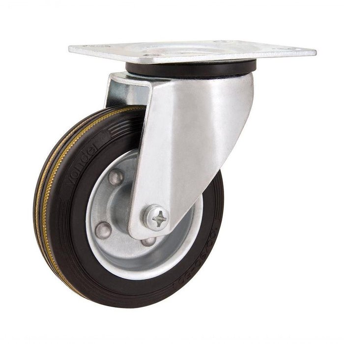 Rodizio Giratório 6 Média 160kg Núcleo Chapa Borracha Preta