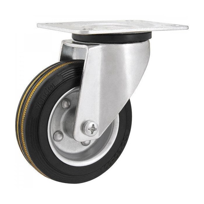 | Informações Complementares | Diâmetro da roda.: 6" - 152 mm | Largura da roda: 40,0 mm | Diâmetro do eixo da roda.: 20,0 mm | Capacidade de carga do rodízio: 130 kg | Material da roda.: Borracha (Com núcleo em chapa de aço zincado estampado) | Cor da roda: Preto | Material da base do |