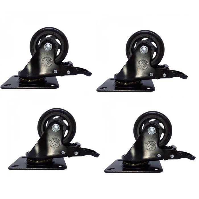 Rodizio Giratório Placa Freio 312 Preto A09430-gf Kit 4 Peças Preto