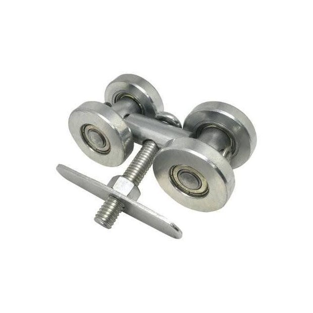 Rodízio em aço galvanizado, com 4 rodas, utilizados em portas e portões deslizantes (correr).