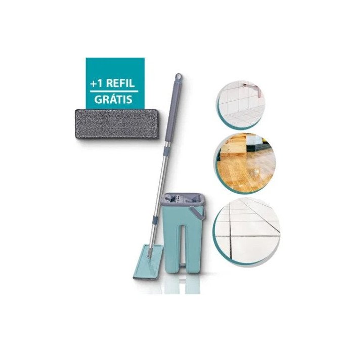 Rodo Esfregão Flat Mop + 1 Refil Melhor Limpeza