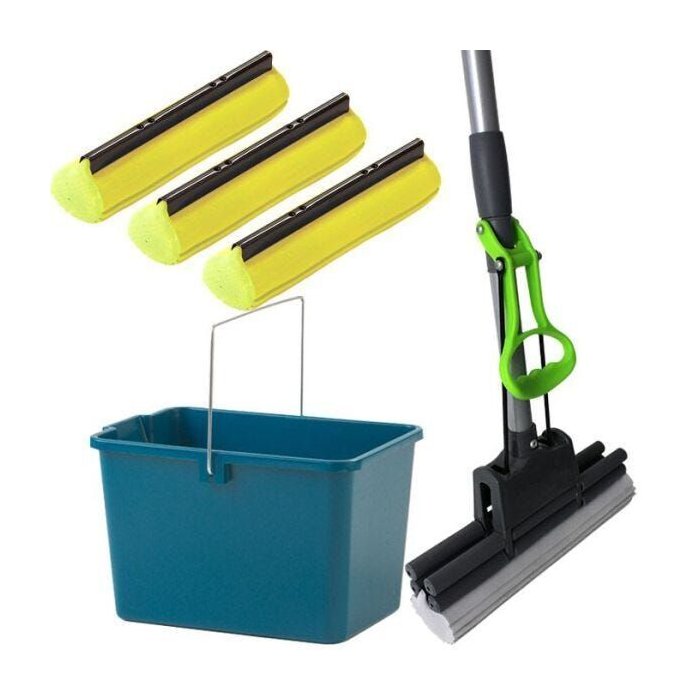 Rodo Mágico Espuma Absorvente Azul com 3 Refil Extra e Balde