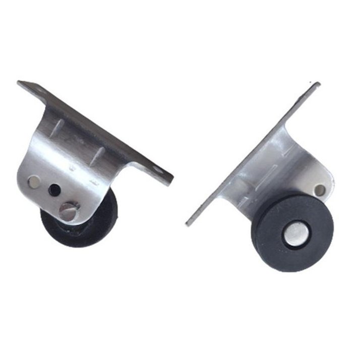 Roldana para box de acrílico e portas de correr simples com cavalete montado pronta para instalação.