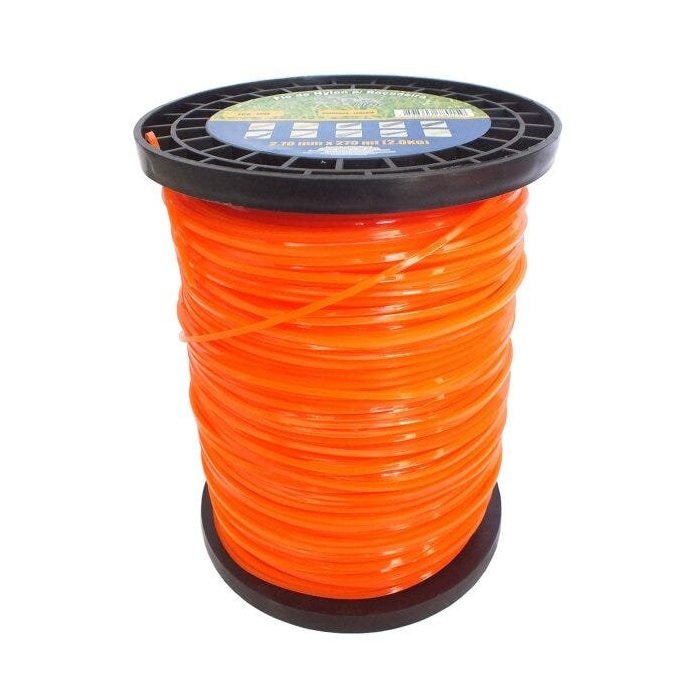 Rolo de Fio de Nylon Spin para Roçadeiras. Fio 100% em Nylon com espessura de 2,70mm Quadrado, com 279 Metros de comprimento e 2kg na cor Laranja. Alta qualidade, resistência e durabilidade! Marca Spin.