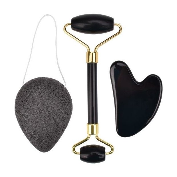 • O Smart Massageador Rolo de Massagem de Obsidiana Negra pode ser usado em qualquer tipo de pele para manter uma rotina de beleza da manhã ou da noite.