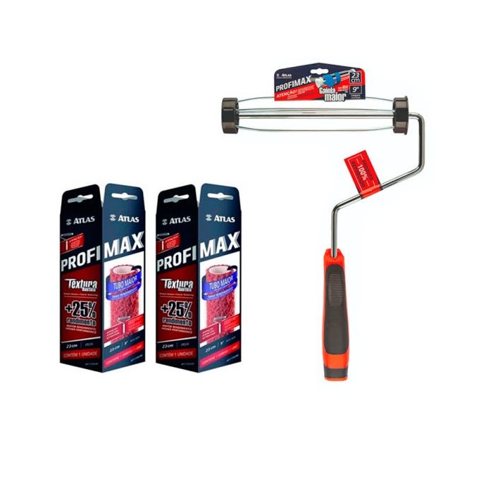 Rolo Pintura Textura Profimax com Garfo 23cm=2 Rolo+1 Suporte