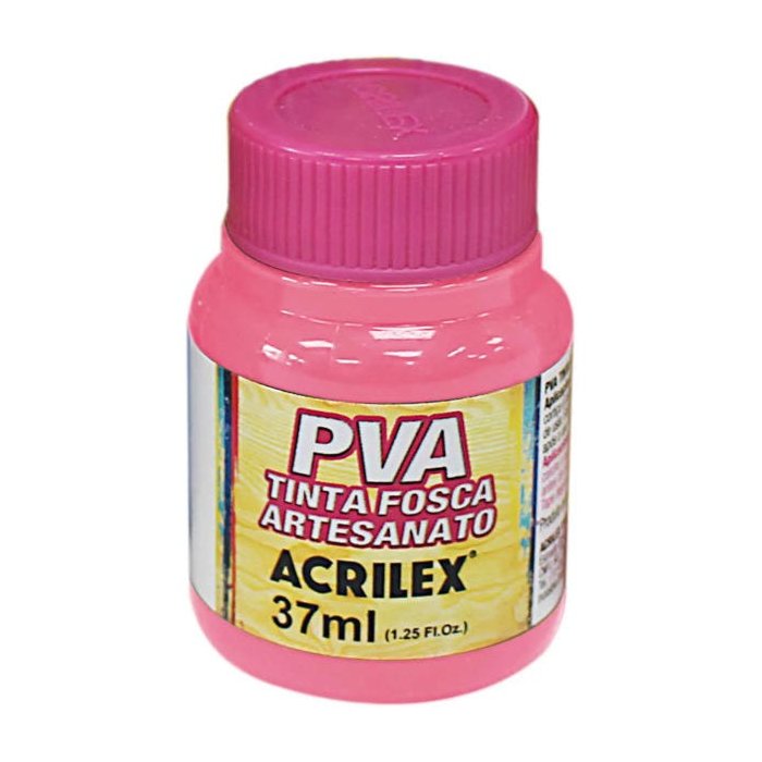 PVA TINTA FOSCA PARA ARTESANATOCARACTERÍSTICASA base de Látex P.V.A.Secagem rápida.Acabamento fosco.Pronta para usoMODO DE USARPode ser aplicada com pincel, esponja ou rolinho de espuma.AUXILIARESDiluente: água.Gel para Matizar, Médium Arílico, Verniz Acrílico, Lacas, Acrilfix e Base Acrílica para Artesanato.Ideal para trabalhos artesanais sobre madeira, gesso, MDF, cerâmica, cortiça, isopor, papel, palha e PET (preparado antes com Primer Acrilex).