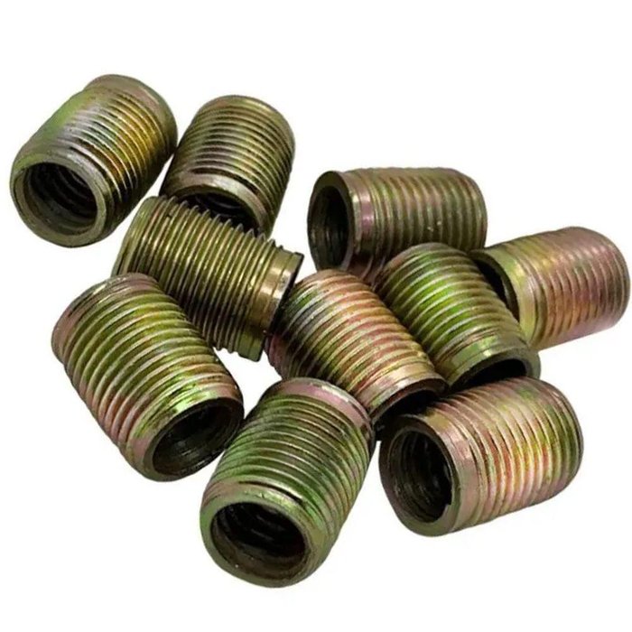 Rosca Postiça Bucha Roscada - M14x1,5 - M20x1,5 - 10 Pçs O QUE É A BUCHA ROSCADAAs buchas roscadas são insertos roscados geralmente fabricados em Latão ou Aço Chumballoy. Essa ferramenta possui inúmeros modelos de diâmetro, possibilitando assim, uma maior abertura no momento da operação. Variando em tamanhos com medidas internas e externas. Além do tamanho, ela possui diversos modelos diferentes, como Rosca Métrica Grossa (M), Rosca Métrica Fina (MF), Rosca Unificada Série Grossa (UNC), Rosca Standard inglesa WhitWorth Série Grossa (BSW), por exemplo. PARA QUE SERVE A ROSCA POSTIÇAA principal função da bucha roscada é reparar furos em roscas danificadas, garantindo um novo filete. COMO UTILIZAR O INSERTO ROSCADOA bucha roscada, ou suplemento de rosca, não funciona sozinha, para que ela opere é necessário que se utilize um Macho, um Vira Macho (Desandador), uma Broca, e uma cola especial para aplicação da ferramenta caso precise (cola trava rosca). O primeiro passo é realizar o furo no material com a broca, lembrando-se sempre de manter a furadeira em 90º para que ela fique da forma mais reta possível. Após realizar o furo, é necessário que se faça a abertura de rosca com o Macho, utilizando um Vira Macho tipo Desandador. Para esse procedimento é indicado que se aplique lubrificante, evitando assim que sua ferramenta sofra danos. (Sempre em 90º). Depois de feito a abertura de rosca, basta inserir a cola (caso precise) e aplicar a bucha. Pronto, seu inserto roscado já está preparado para uso. ITENS INCLUSOS NO KIT BUCHA ROSCADA- (10) Buchas Roscadas – Med. Ø INT. 14 X 1,5 X Ø EXT. 20 X 1,5. DESCRIÇÃO ROSCA POSTIÇA- Medida Interna: 14 X 1,5;