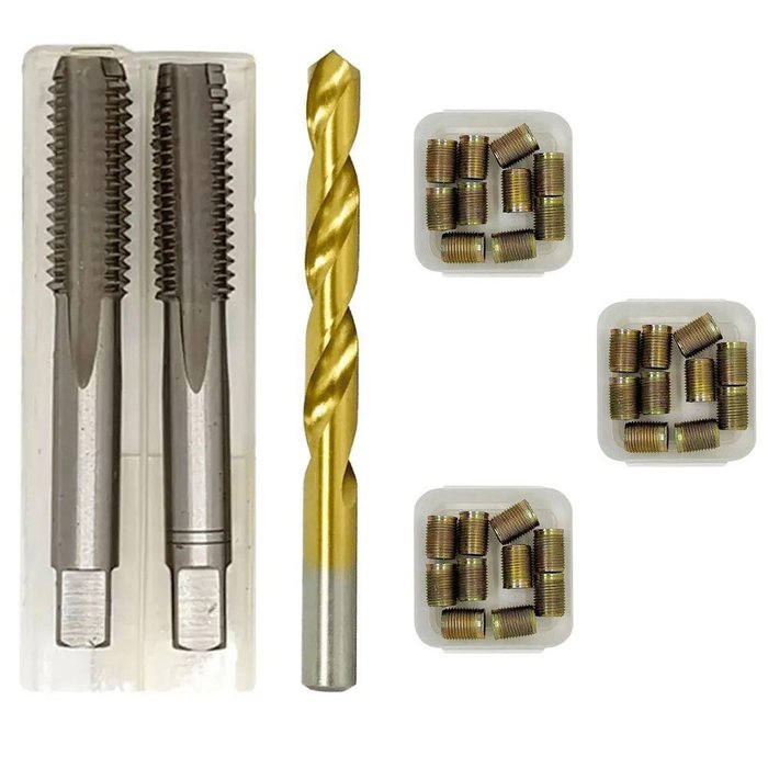 Rosca Postiça Bucha Roscada - M8 X 1,25 - M10 X 1,25 30 Pçs + Macho + Broca 8,7mm