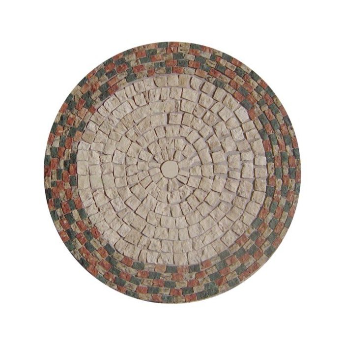 Pedras utilizadas: Travertino Bege, Granito Vermelho Guaíba, Amarelo Ornamental e Verde. Os tons podem variar conforme o lote das pedras