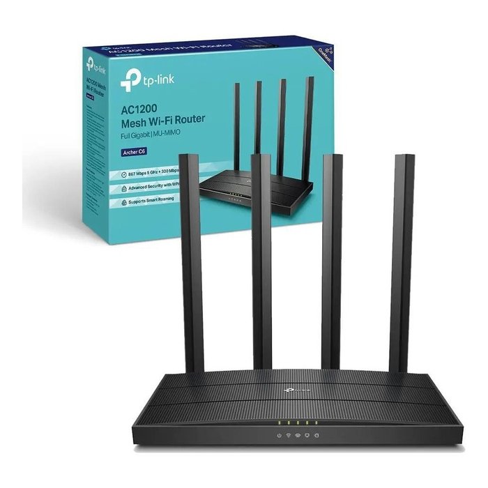 Roteador TP-Link Archer C6 AC 1200 Wireless Gigabit Dual Band 2,4/5Ghz 4 Ant Fixas 5dBi