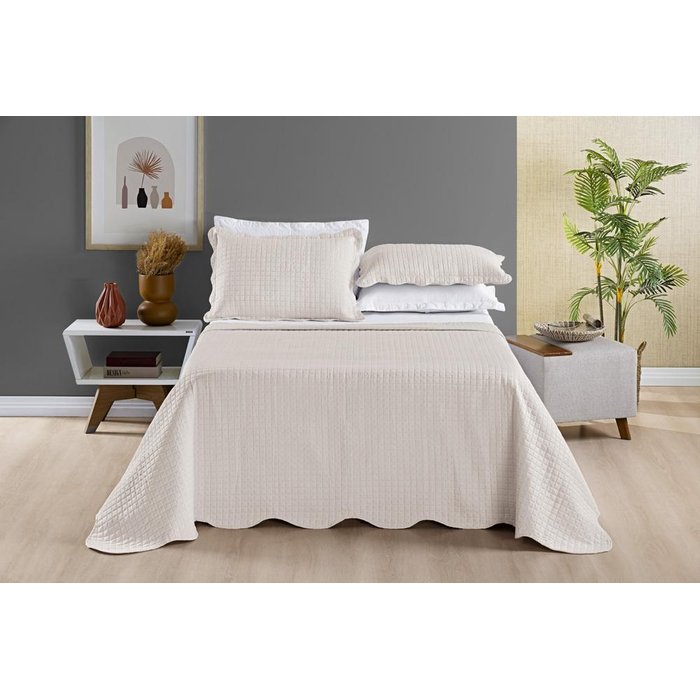 Toda maciez e qualidade que você merece com a cobre leito bouti dupla face. O kit é composto por 3 peças dupla face , barrados ondulados e tecido micro percal 200 fios.