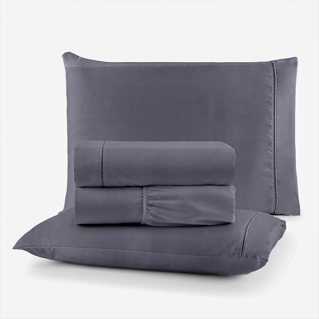 Roupa de Cama Lençol Queen Completo 400 Fios Percal 4 Peças Ponto Palito Anti-pilling com Toque 100% Cinza