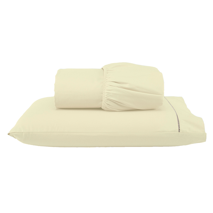 Roupa de Cama Lençol Solteiro 200 Fios Algodão 2 Peças em Ponto Palito Anti-pilling com Toque Suave Palha/Bege