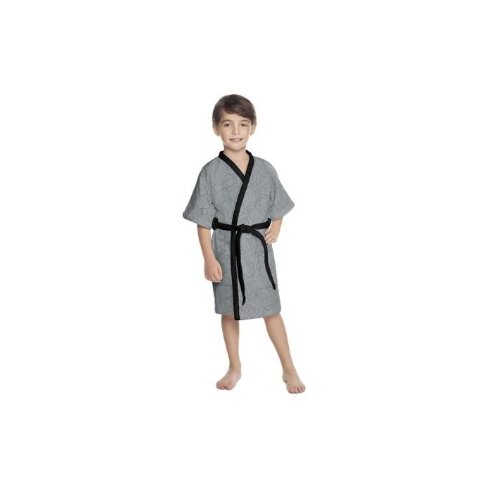 ROUPÃO AVELUDADO INFANTIL QUIMONO ESTAMPADO PLAYSTATION G LEPPER G, CINZA