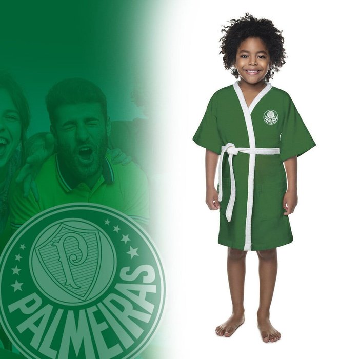 Roupão de Banho Infantil Time Futebol Aveludado Piscina Palmeiras