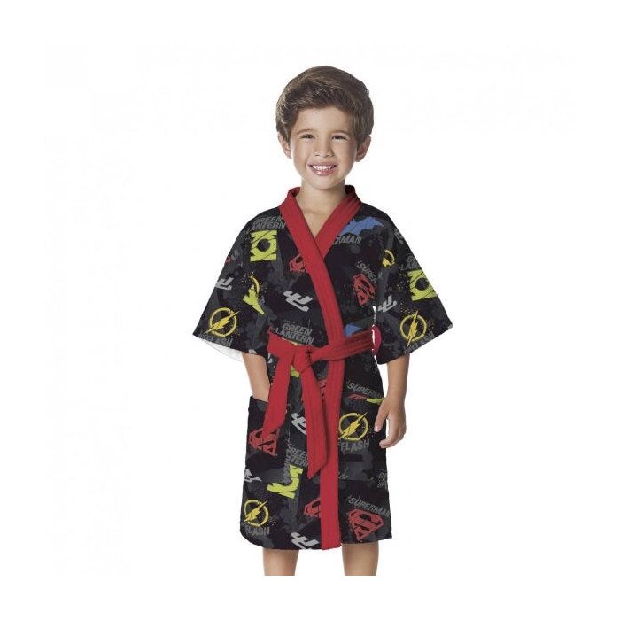 Roupão Infantil Aveludado Liga da Justiça Algodão Lepper Preto