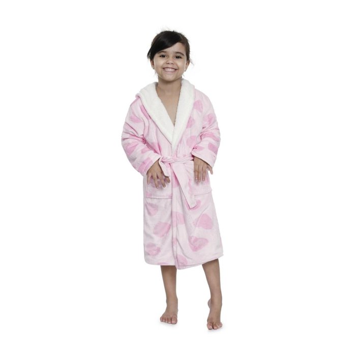 Roupão Infantil Sherpinha Coração Rosa Tamanho M