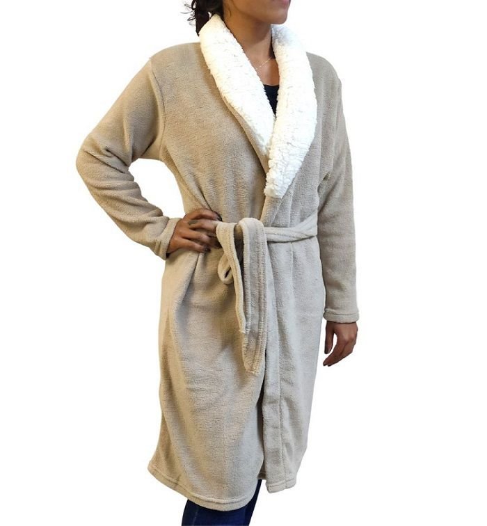 Roupão Microfibra Gola Efeito Pele De Carneiro Taupe G