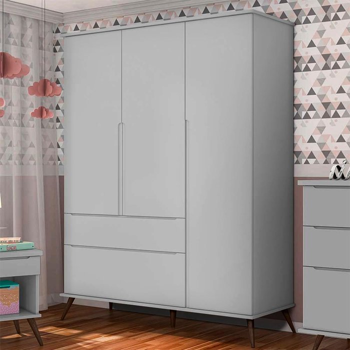 Roupeiro 3 Portas Cinza Mei Jm Móveis Baby