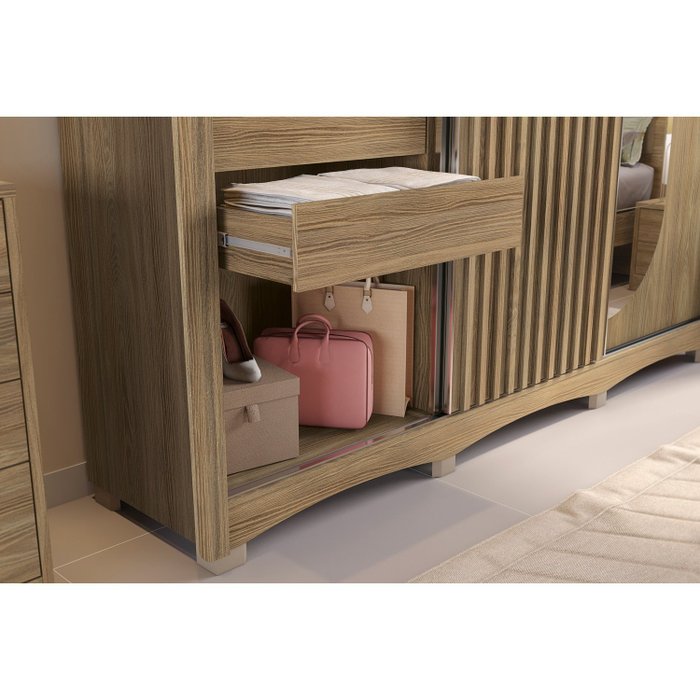Roupeiro 3 Portas de Correr 4 Gavetas com Pés Nogueira