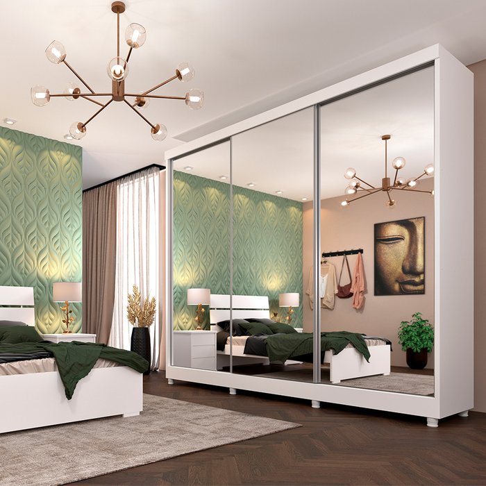 Roupeiro 3 Portas Espelhado Montenegro com 8 Pés Neve