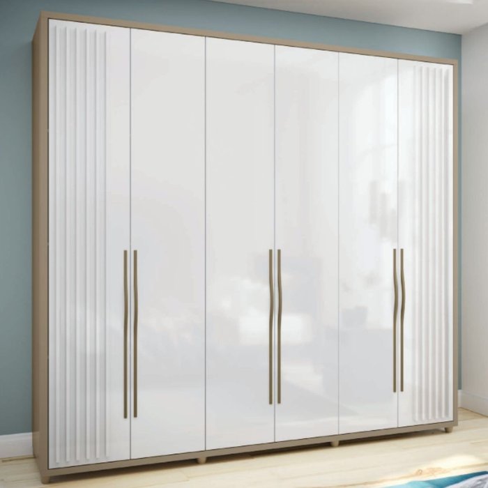 Um incrível roupeiro com 6 portas de bater e com gavetas internas, produzido em material de excelente qualidade e com uma profundidade mais que suficiente para que seus cabides fiquem bem alocados, aproveite e leve hoje mesmo pra casa um guarda roupa perfeito.