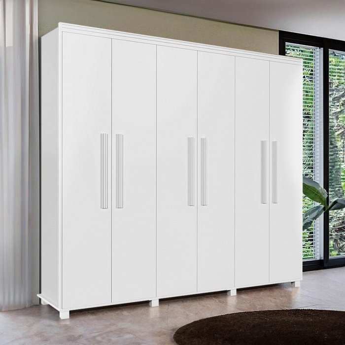 Roupeiro 6 Portas 4 Gavetas Casal 100% Mdf Branco Blor Jm Móveis