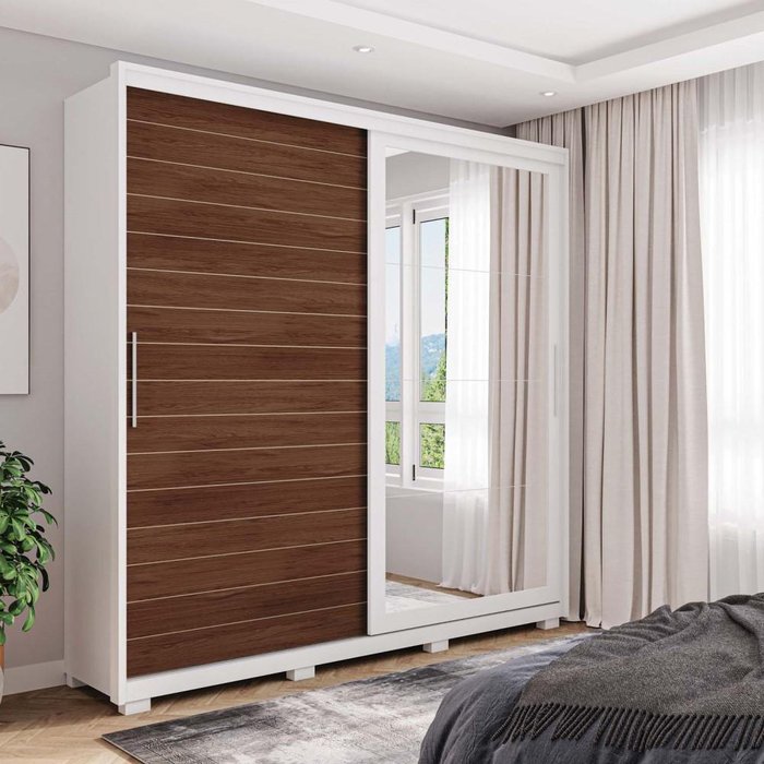 Roupeiro Armário Quarto Solteiro Espelho 2 Portas Branco