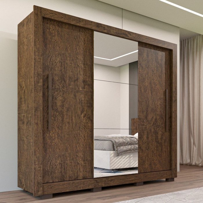 Roupeiro Cannes 3 Portas 3 Gavetas com Espelho Wengue Naturale