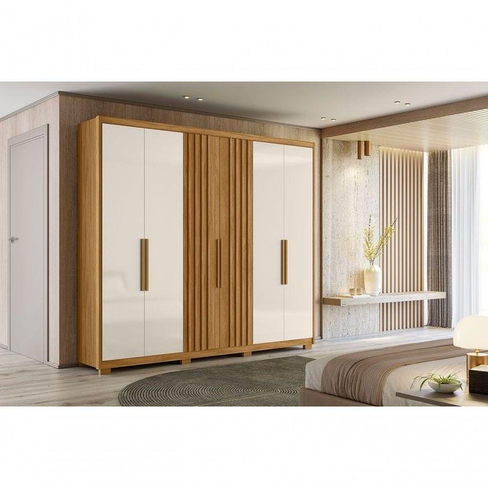 Roupeiro Casal 6 Portas 4 Gavetas Araguaia - Moval Cor:freijó-off White