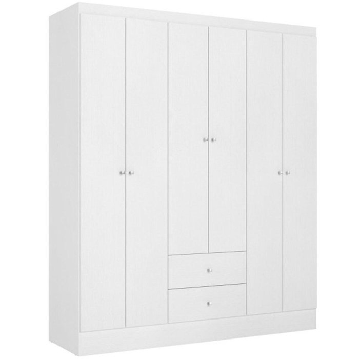 Especificações: Material: MDP Quantidade de portas: 6 Quantidade de gavetas: 2 Quantidade de prateleiras: 5 Quantidade de cabideiros: 2 Tipo de puxador: Ponto Corrediças: Metálicas Acabamento: Acetinado Possui espelho: Não Peso suportado: 5 Kg sobre cada gaveta e 10 Kg sobre cada prateleira
