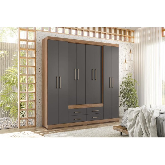 Roupeiro Casal 8 Portas 4 Gavetas Nápoles 8.4 Jatobá/grafite com Pés