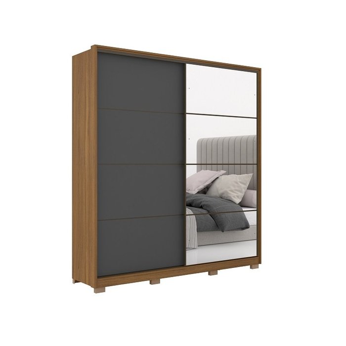 Roupeiro Casal Flex com Pé 2 Portas 3 Gavetas Belga com Espelho Amêndola/Grafito - Demartez/Demóbile