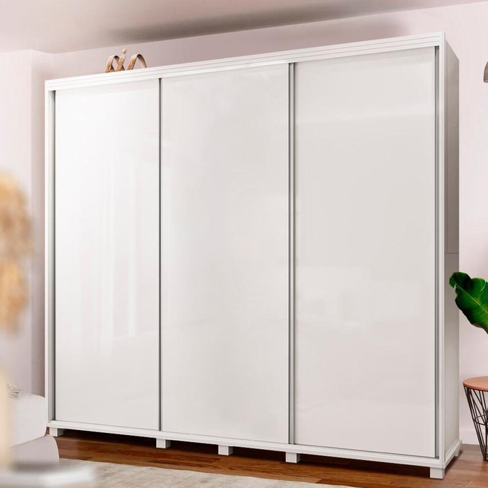 Roupeiro Casal Grande 255 Cm 3 Portas De Correr Branco Colônio Jm Móveis