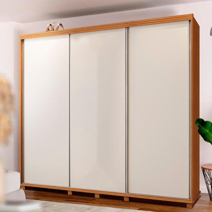 Roupeiro Casal Grande 255 Cm 3 Portas de Correr Nature Off White Flex Colônio Jm Móveis