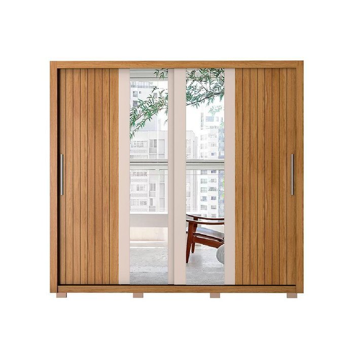 Roupeiro Com 2 Portas Frisado Espelhado Oba Freijó Off White