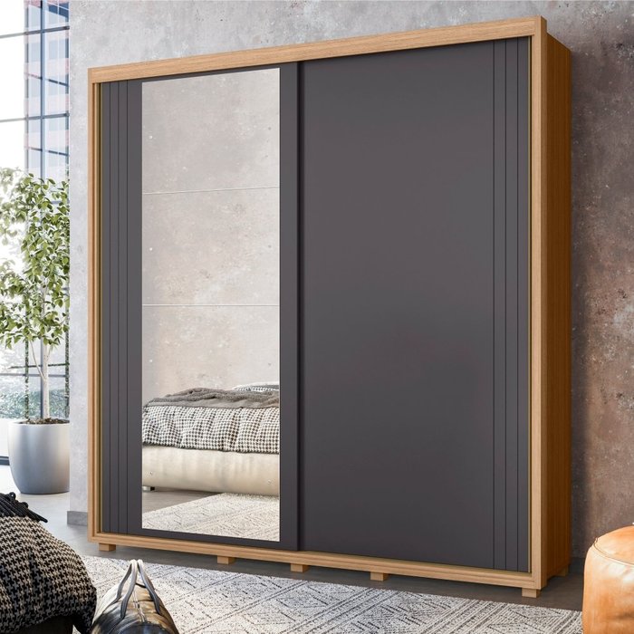 Roupeiro com Porta e Espelho Theo Nature/Titanium/Branco Fosco Liso