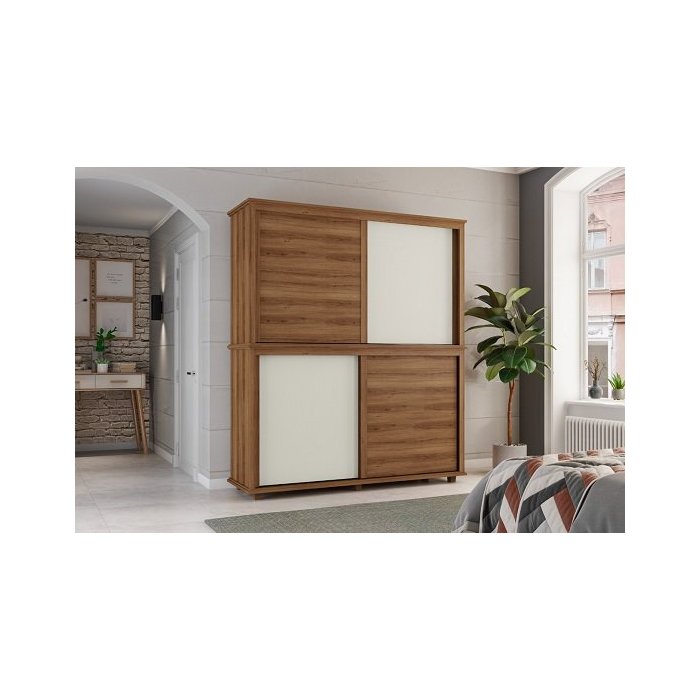 Roupeiro Damier 4 Portas de correr Nature/Off White/Grafite - Fabri Móveis