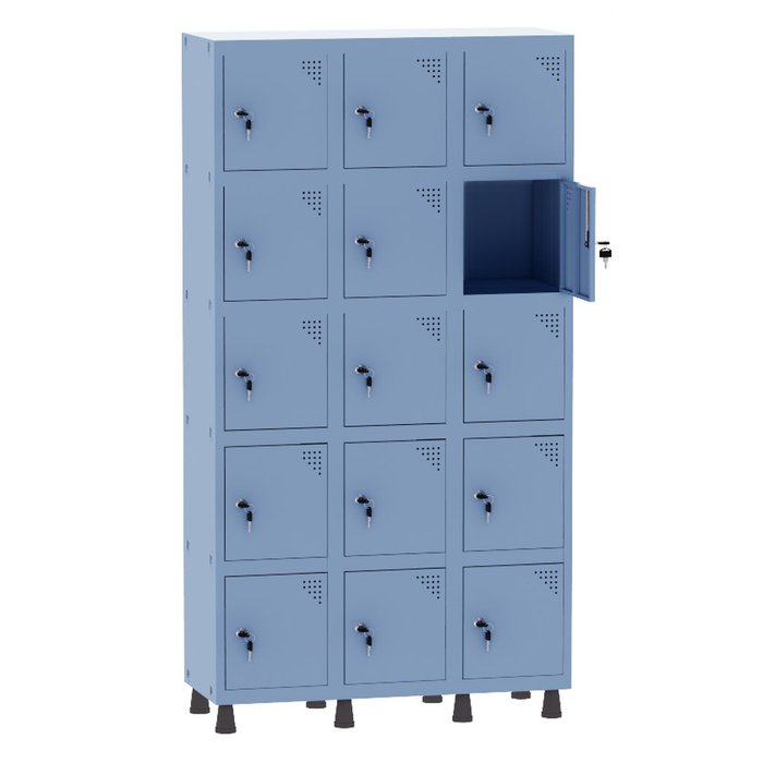 Roupeiro de Aço 3 Vãos 15 Portas com Fechadura Pandin 1,90 M Azul Dali