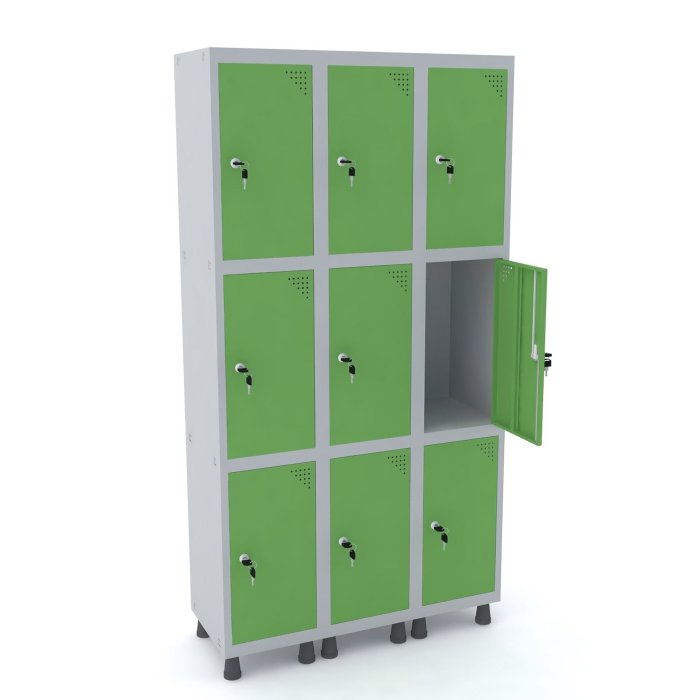 ROUPEIRO DE AÇO 3M 09 PORTAS FECHADURA PANDIN - CINZA/VERDE