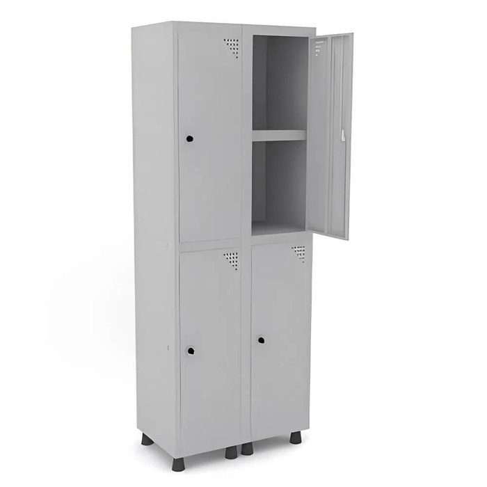 Roupeiro aço totalmente montável com travas invertidas tipo unha de gato que dispensa a utilização de parafusos, 4 portas sobrepostas em aço com encaixe total dentro do vão, com fechamento através de pitão para cadeado. Ideal para guarda volumes, academias, refeitórios, empresas, banheiro vestuários e diversas outras opções para ambientes empresariais.BENEFÍCIOS E DIFERENCIAIS