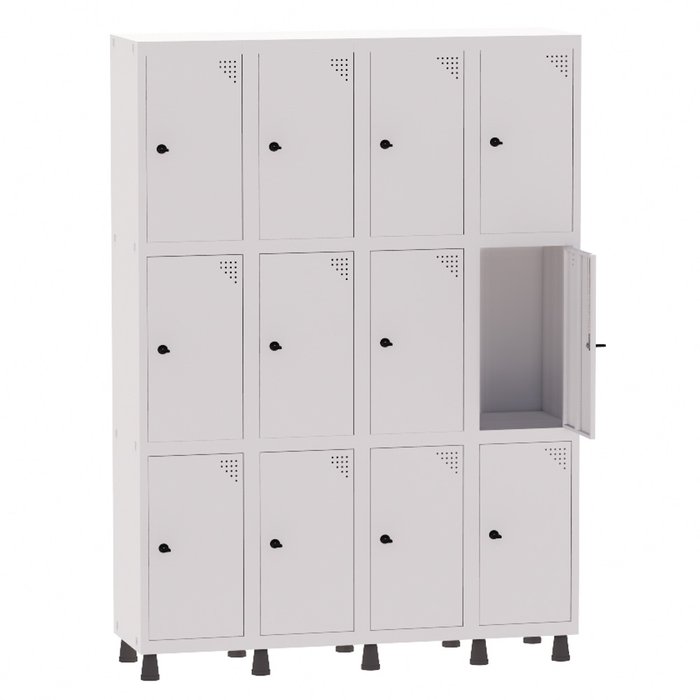 Roupeiro de Aço 4 Vãos 12 Portas com Pitão Pandin 1,90 M Branco