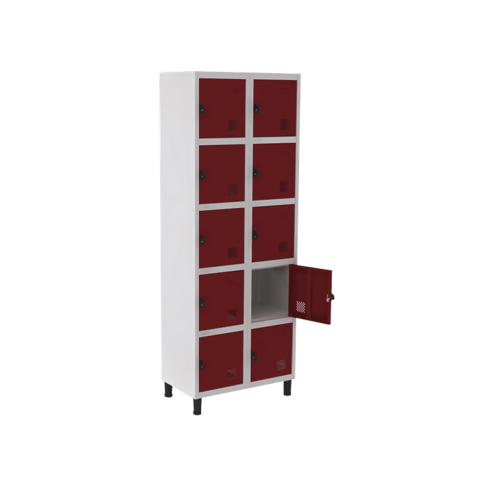 Roupeiro De Aço Guarda-volume Locker 10 Portas Montável Vermelho Corpo Cinza / Portas Vermelhas