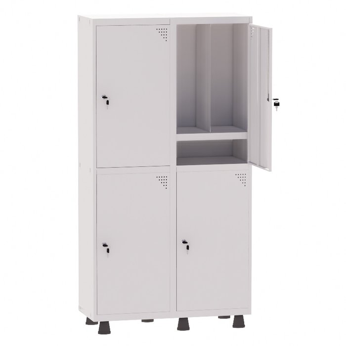 Roupeiro de Aço Insalubre 2 Vãos 04 Portas Com Prateleira e Fechadura Pandin 1,90 m BrancoPRODUTO ENTREGUE DESMONTADO.FICHA TÉCNICAModelo: GRF 502/4 INSPV.Medidas (A x L x P): 1930mm x 1000mm x 420mm.Medida Interna de cada compartimento (A x L x P): 860mm x 490mm x 400mmSeparação vertical interna e porta calçados em cada compartimento.Conforme normas NR18 e NR24. COMPOSIÇÃOTotalmente montável, dispensa a utilização de parafusosCorpo, laterais e portas em chapa 26 (0,45 mm). Capacidade por prateleira 15kg (bem distribuídos).Prateleira Base para fixar os pés confeccionada em chapa 24 (0,60 mm).Sistema de fechamento de varão de 3 pontos, através de Fechadura.Na embalagem do modulo inicial acompanha 4 pés no complemento 2 pés regulaveis.Sistema Pivotante de portas.O produto é de fácil montagem e vem acompanhado de seu manual.ACABAMENTO Acompanha kit pé regulável Pintura eletrostática a pó (tinta híbrida) na cor cinza cristal Pintura em esmalte sintético nas demais coresGARANTIA12 meses de garantia contra qualquer defeito de fabricação.