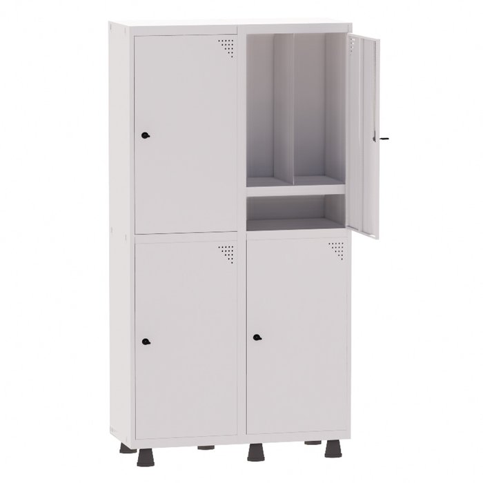 Roupeiro de Aço Insalubre 2 Vãos 04 Portas Com Prateleira e Pitão Pandin 1,90 m BrancoPRODUTO ENTREGUE DESMONTADO.FICHA TÉCNICAModelo: GRP 502/4 INSPV.Medidas (A x L x P): 1930mm x 1000mm x 420mm.Medida Interna de cada compartimento (A x L x P): 860mm x 490mm x 400mmSeparação vertical interna e porta calçados em cada compartimento.Conforme normas NR18 e NR24. COMPOSIÇÃOTotalmente montável, dispensa a utilização de parafusosCorpo, laterais e portas em chapa 26 (0,45 mm). Capacidade por prateleira 15kg (bem distribuídos).Prateleira Base para fixar os pés confeccionada em chapa 24 (0,60 mm).Sistema de fechamento de varão de 3 pontos, através de Pitão.Na embalagem do modulo inicial acompanha 4 pés no complemento 2 pés regulaveis.Sistema Pivotante de portas.O produto é de fácil montagem e vem acompanhado de seu manual.ACABAMENTO Acompanha kit pé regulável Pintura eletrostática a pó (tinta híbrida) na cor cinza cristal Pintura em esmalte sintético nas demais coresGARANTIA12 meses de garantia contra qualquer defeito de fabricação.