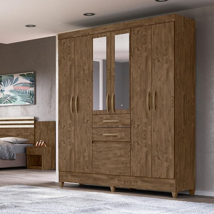Dimensões do produto: Altura 204 cm; Largura 177 cm; Profundidade 47 cm; Itens Inclusos: 1 Guarda Roupa - Material em MDP - 7 Portas de giro com puxadores na cor bronze - 2 Espelhos nas portas centrais do guarda roupa - 4 Nichos com um excelente espaço para armazenamento, proporcionando otimização de espaço - 2 Gavetas com puxadores na cor bronze - 2 Cabideiros em alumínio - 1 Calceiro em alumínio - Pés em PVC com montagem opcional Complexidade da montagem: Média, pode ser montado por apenas uma pessoa e/ou necessite de maior conhecimento para montagem. Recomendações de uso, manutenção e limpeza: Limpar com flanela ou pano macio seco, não utilizar produtos abrasivos, desengordurantes, álcool ou solvente. Não expor o produto diretamente a luz solar e à umidade Garantia: 3 meses OBS: Foto meramente ilustrativa, objetos, utensílios e decoração não fazem parte do produto. 16317: Marrom