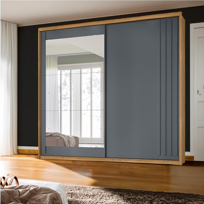 Roupeiro de Solteiro com Espelho Freijó Cinza Danvor Jm Móveis